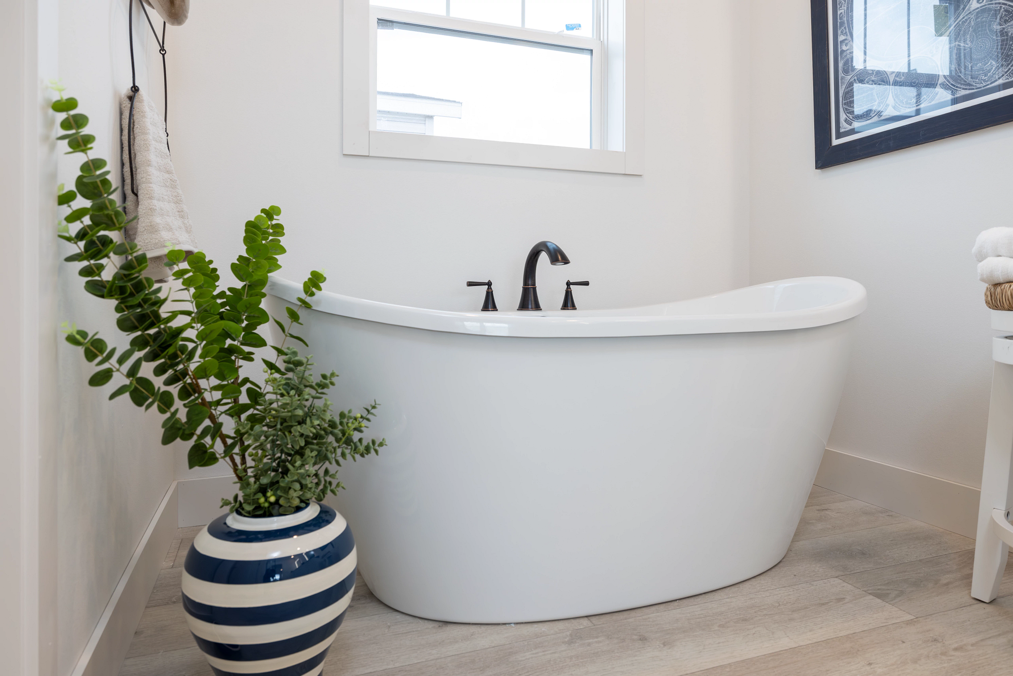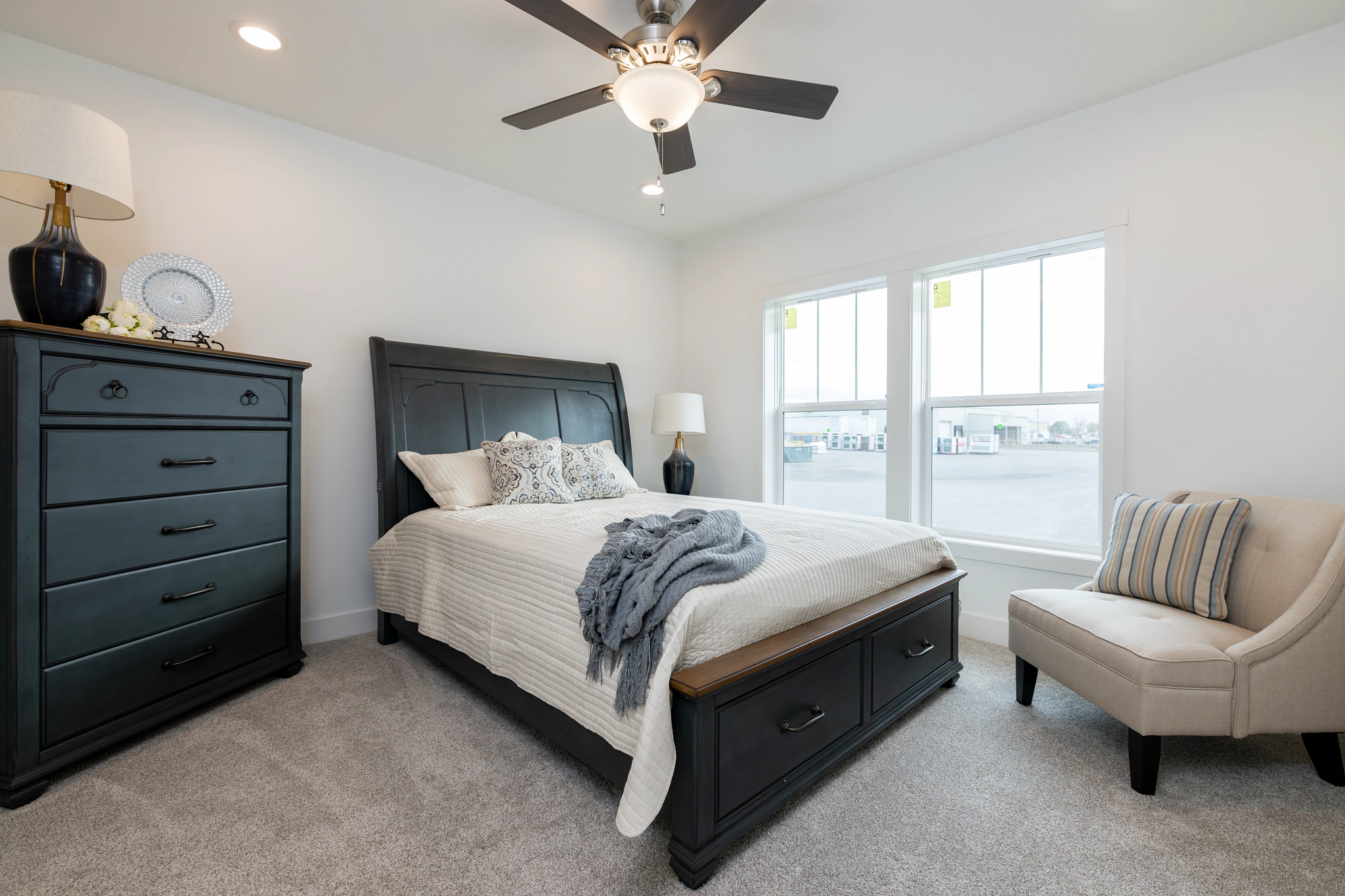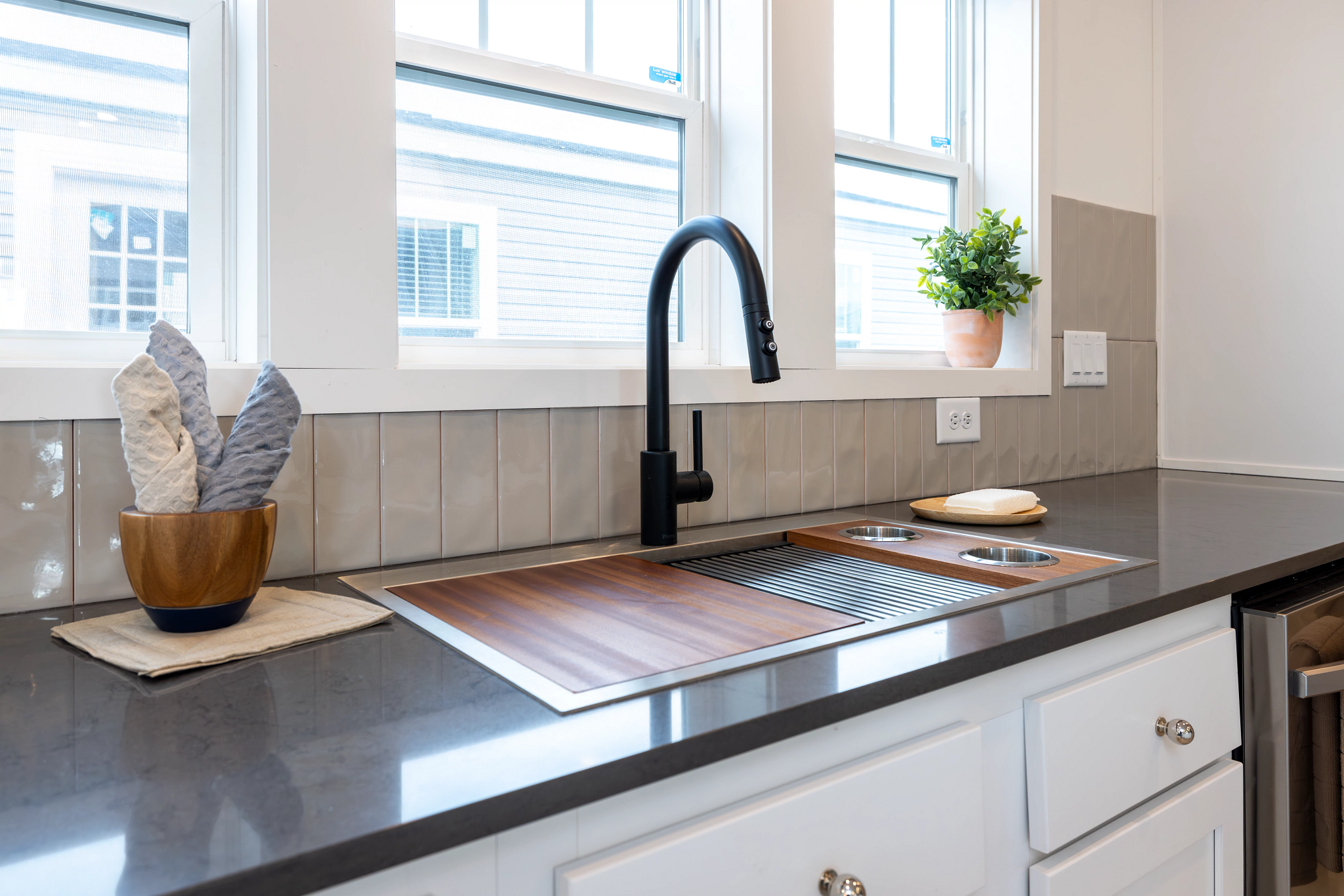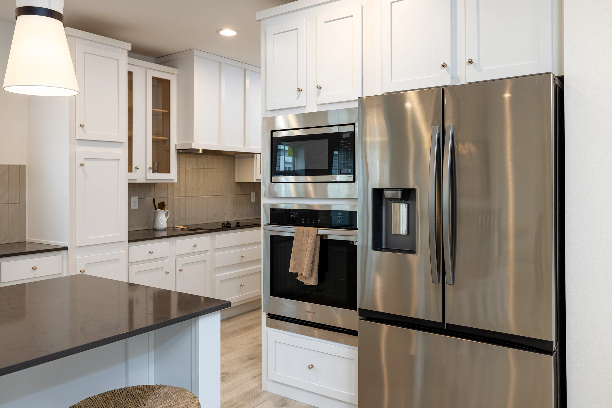 Inside, the Schult Encore Winston features an open layout that connects the living room, dining area, and kitchen, making it easy to stay connected whether you’re enjoying a quiet evening at home or entertaining friends and family. Tall sidewalls and flat ceilings create a bright, open feel throughout the house, while quality finishes add warmth and durability. The kitchen is designed to handle everyday living and entertaining alike, featuring hardwood cabinetry, soft-close drawers and doors, a solid-surface island, full ceramic backsplash, and stainless steel appliances. The primary bedroom provides a comfortable space to unwind, complete with a private bathroom featuring a spacious tile shower and modern fixtures. Two additional bedrooms offer flexibility for family, guests, or a home office, while the dedicated utility room adds practical storage and laundry space to keep things organized. Built with efficiency and quality materials throughout, the Winston offers a well-rounded layout with the space and features today’s homeowners are looking for.